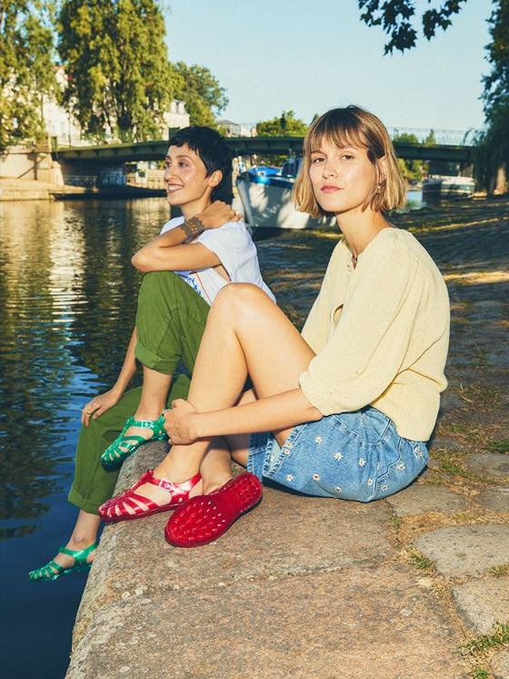 Née en 1946, au lendemain de la guerre, pour trouver une alternative sérieuse au cuir, Méduse invente la première sandale en plastique.