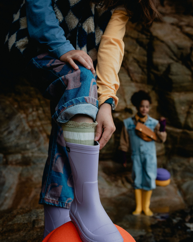 Le bon ajustement est essentiel pour garantir à la fois le confort et la sécurité de votre enfant. Une botte trop large risque de laisser pénétrer l’eau ou de faire glisser le pied à l’intérieur, tandis qu’une botte trop serrée peut gêner la circulation et nuire au confort lors de longues promenades. La hauteur de la tige est également à prendre en compte : plus elle est haute, mieux les éclaboussures et les flaques sont maîtrisées, et pour les plus jeunes, une tige légèrement plus haute peut offrir une sécurité supplémentaire. Le confort interne ne doit pas être négligé : l’intérieur de la botte doit être souple et permettre à l’enfant de bouger librement, même lorsqu’il la porte pendant plusieurs heures. Côté pointure, Méduse propose des bottes enfants allant du 20 au 34 (Guide des tailles), et il est conseillé de laisser un peu d’espace supplémentaire pour que l’enfant puisse porter des chaussettes épaisses en hiver, sans que ses pieds soient comprimés.