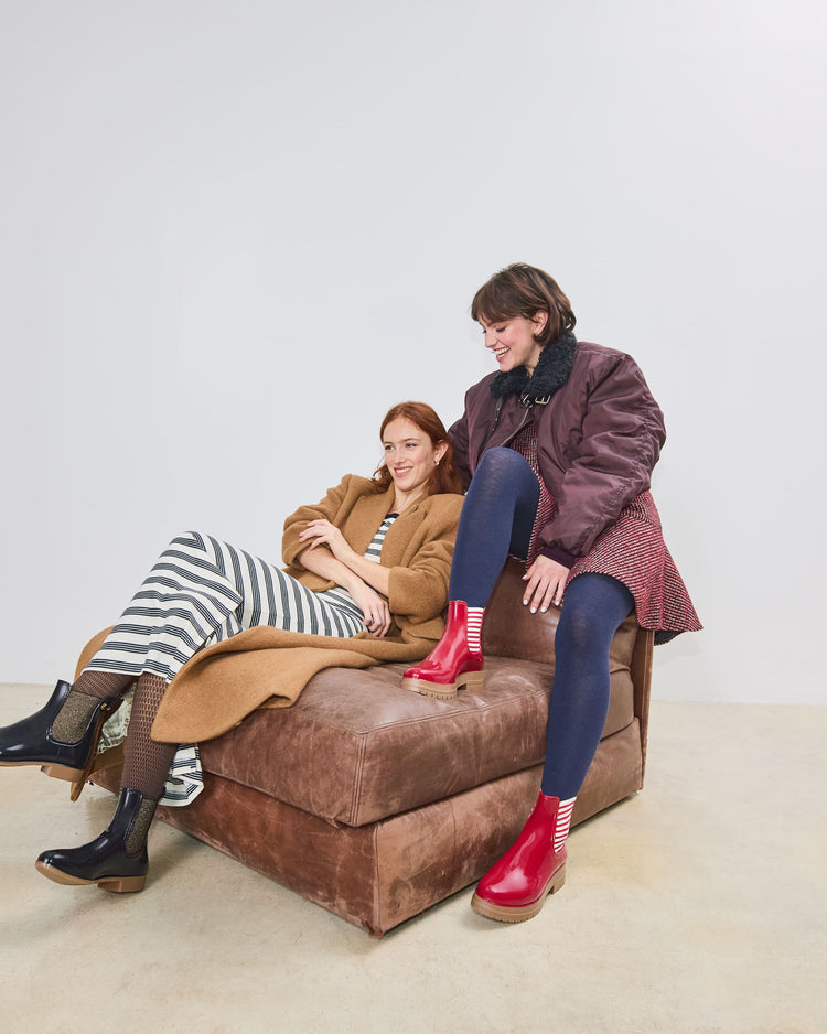 Quand la saison s’éternise et que les averses deviennent quotidiennes, les bottines Méduse se révèlent indispensables. Plus qu’une simple protection contre la pluie, elles apportent une touche de caractère et de couleur à vos tenues. .