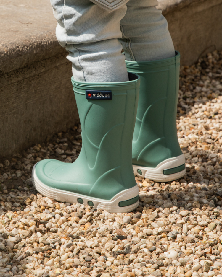 Fabriquées avec soin dans notre atelier en France, nos bottes enfant allient durabilité et style. Déclinées dans des couleurs ludiques et naturelles, comme le lichen, elles apportent une touche de gaieté même sous la pluie. Conçues en PVC recyclable, elles respectent à la fois les petits pieds et la planète.