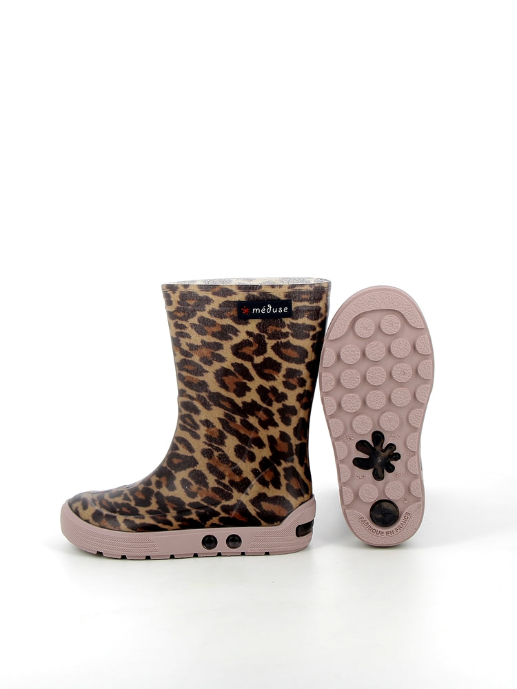 Available from size 20 to 34 in Panther/Dusty Pink, these kids Airdim high boots are the perfect pair for rainy days. These high boots have a unique pattern with dots or panther print.