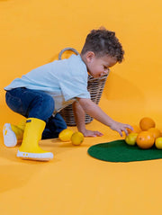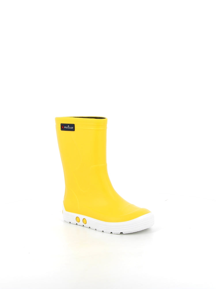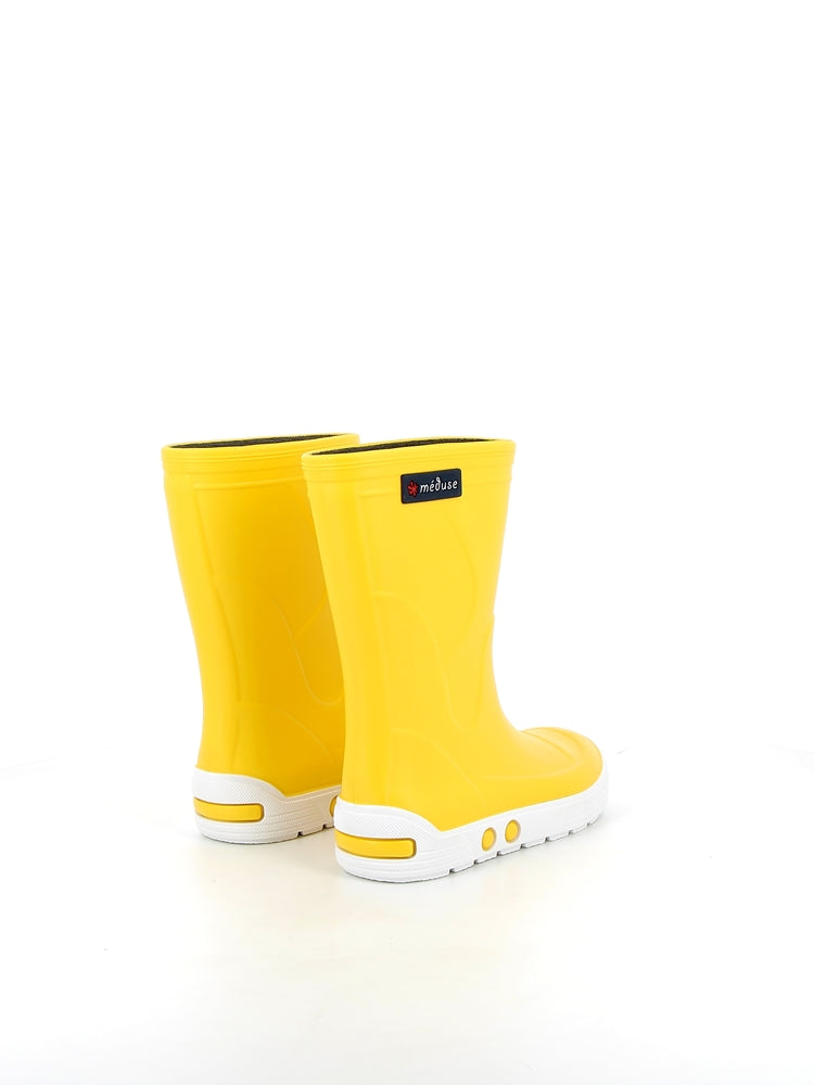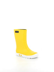Available from size 20 to 34 in Yellow/White, these kids Airport high boots are the perfect pair for rainy days. These high boots have a white sole and colored boot.