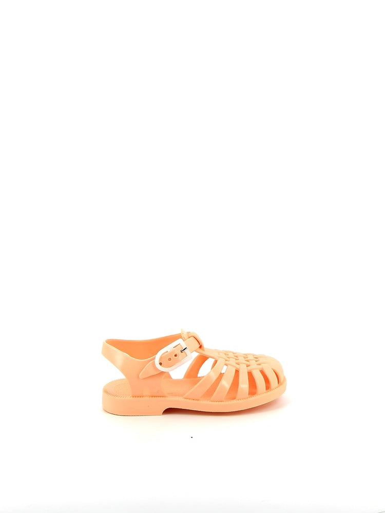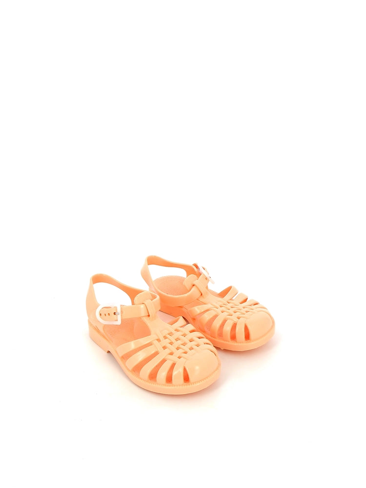 Available from size 18 to 38 in Peach, these kids Sun sandals are the perfect pair for the beach. These sandals have a rounded toe, braided straps and spiked sole.