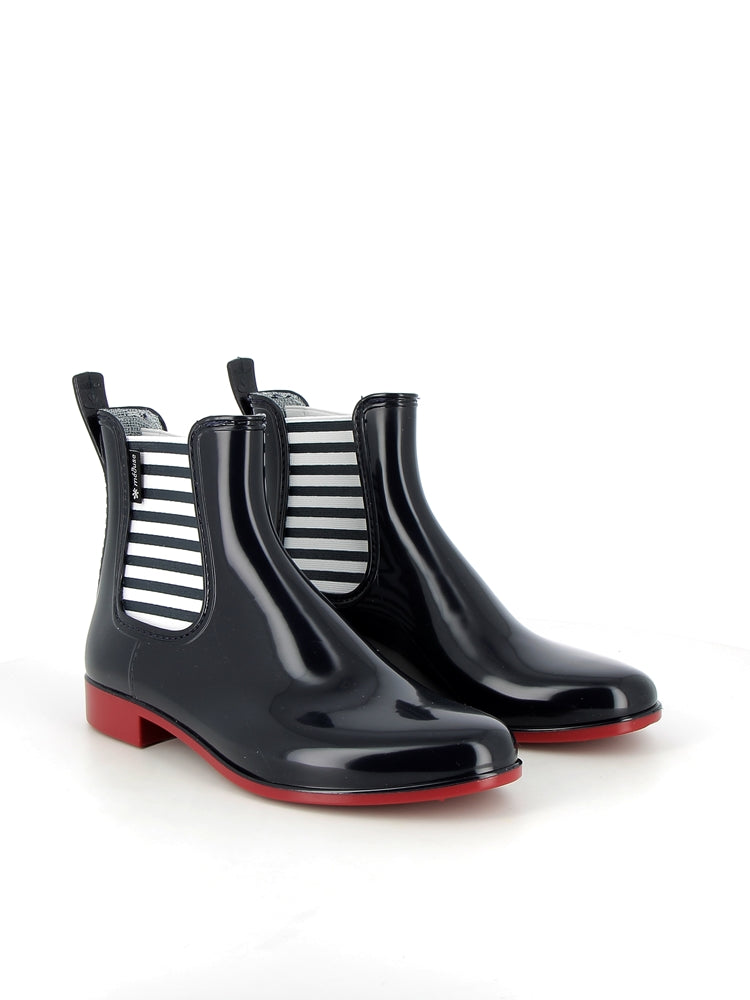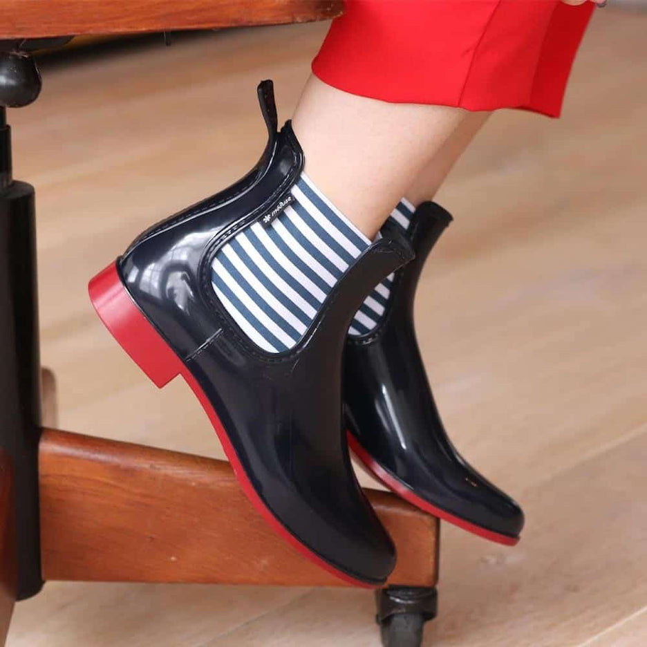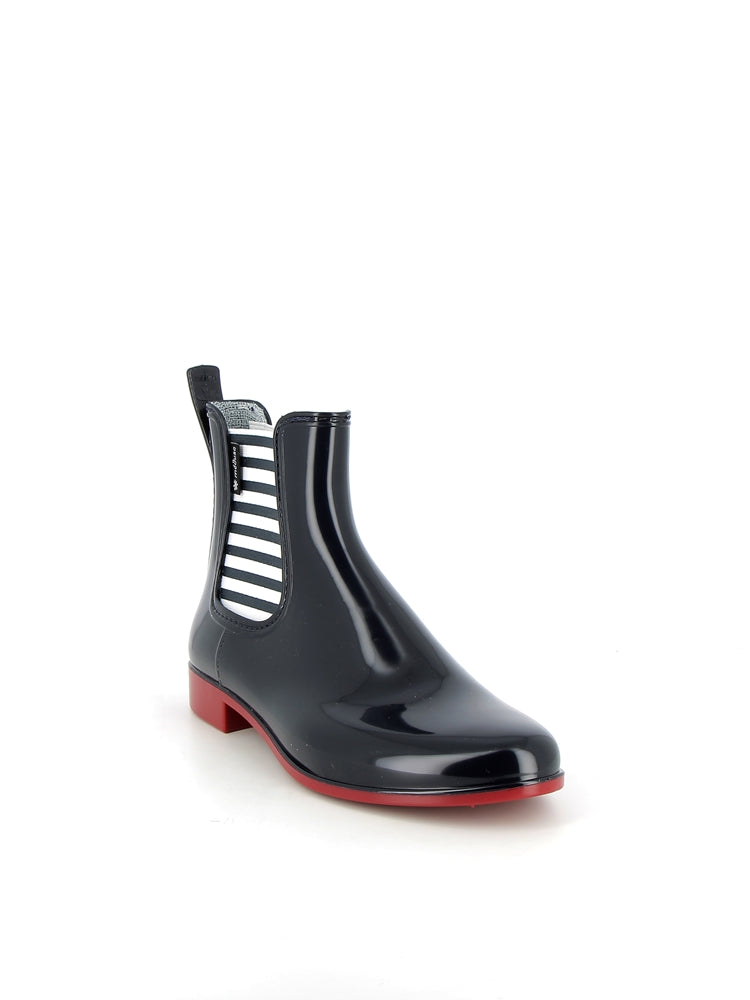 Available from size 36 to 41 in NIght Bkue/Red, these women's Japmer low boots are the perfect pair for rainy days. These low boots have a striped elastic.