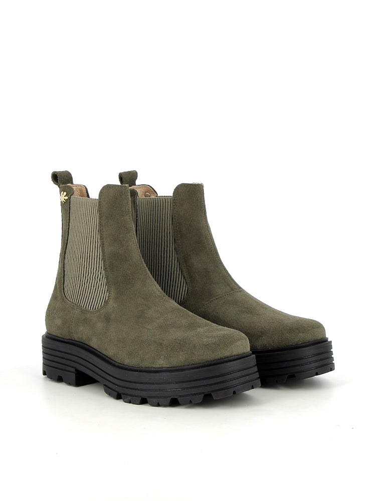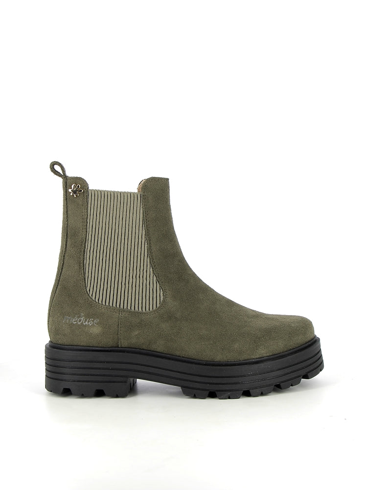 Découvrez la première Chelsea boot en cuir velours de chez Méduse. Facile à enfiler grâce aux élastiques sur la tige, elle vous procurera tout le confort nécessaire pour vous accompagner au quotidien. Cette boots femme, entièrement doublée cuir, avec semelle intérieure cuir, repose sur une semelle épaisse et crantée pour un style très actuel. Ce modèle combine confort et sophistication, parfait pour toutes les occasions.