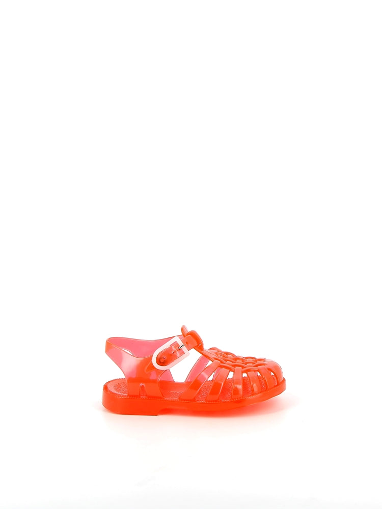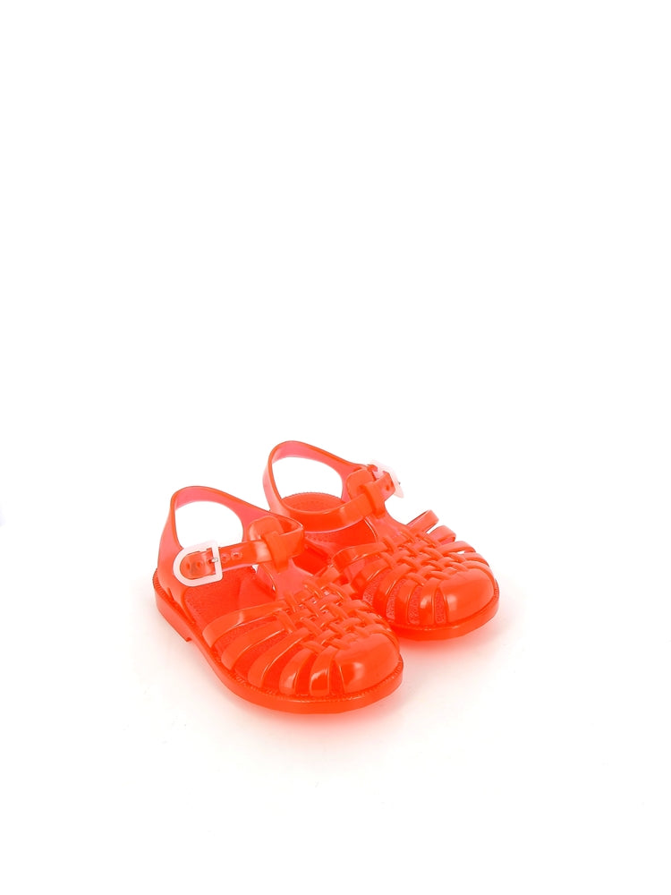 Available from size 18 to 38 in Flame, these kids Sun sandals are the perfect pair for the beach. These sandals have a rounded toe, braided straps and spiked sole.