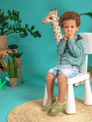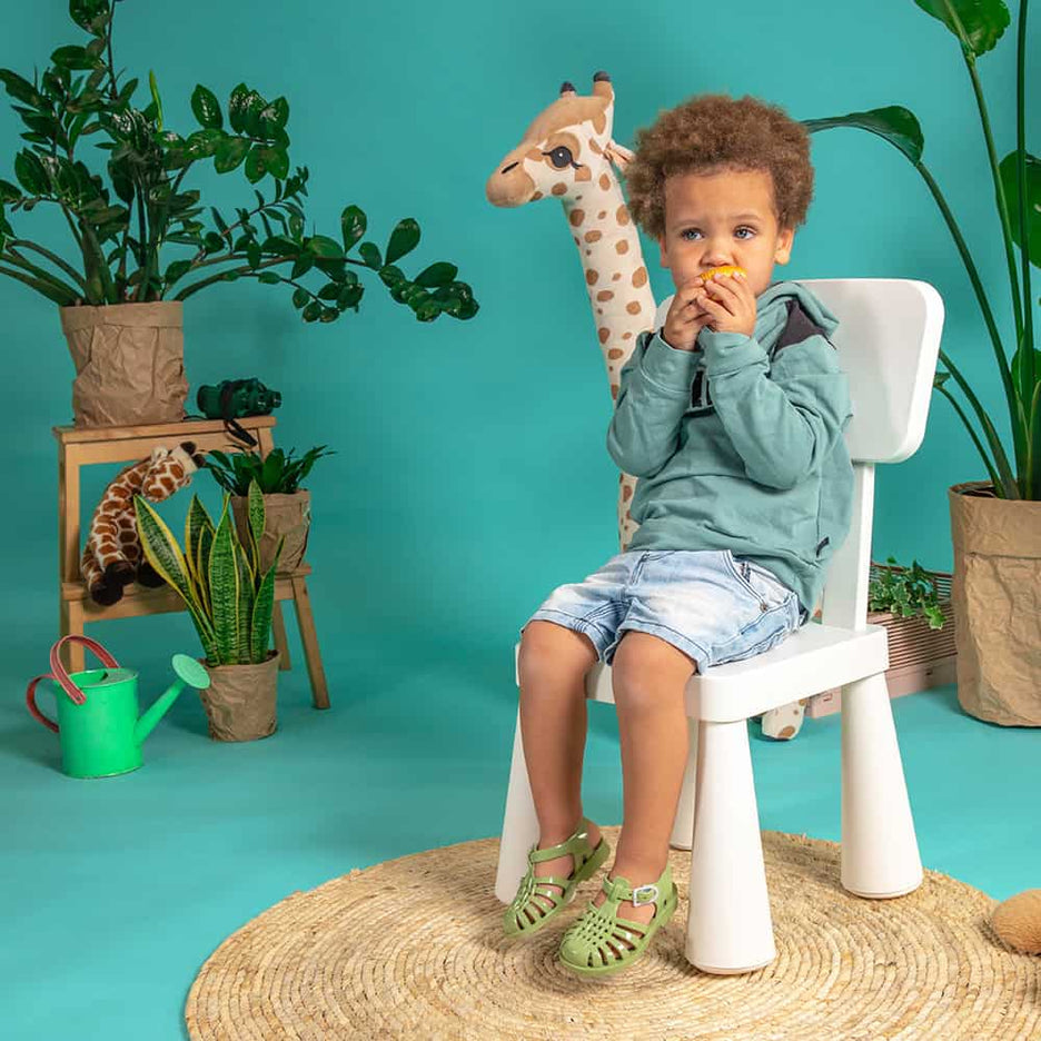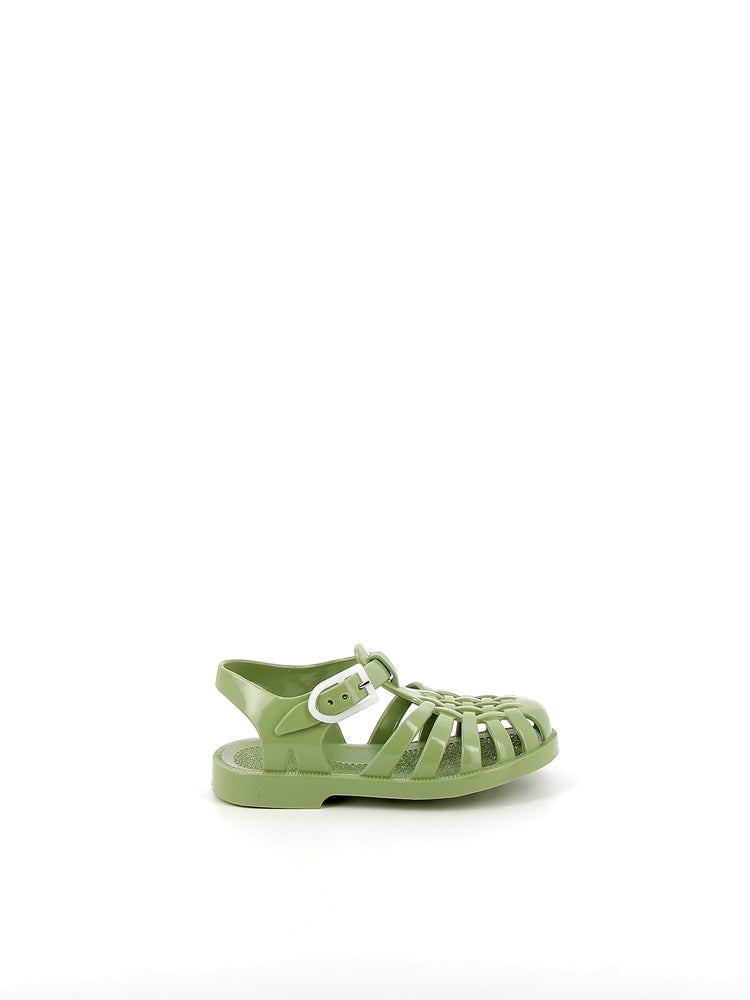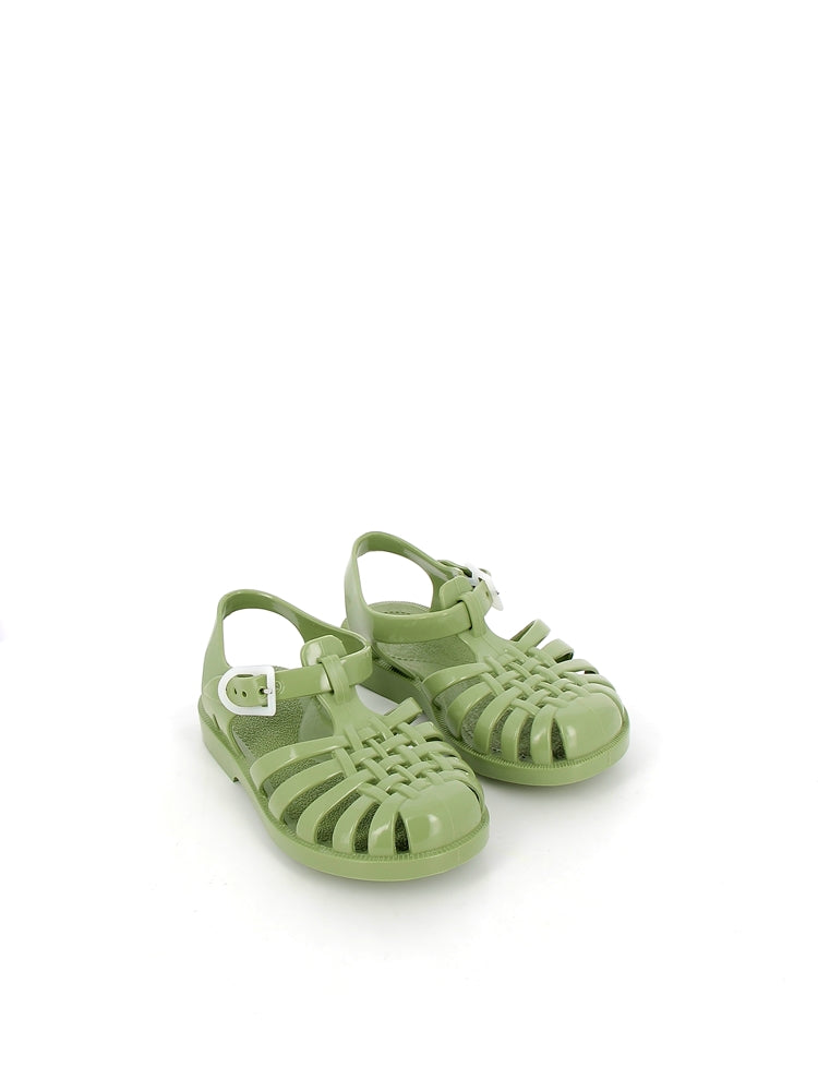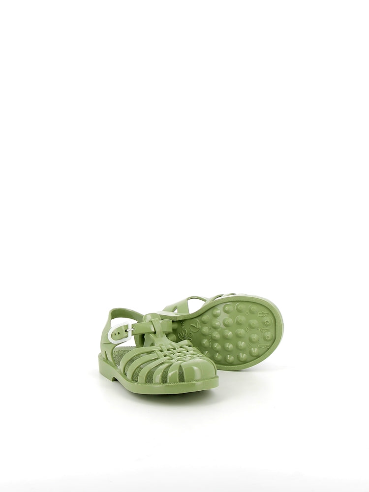 Available from size 18 to 38 in Olive, these kids Sun sandals are the perfect pair for the beach. These sandals have a rounded toe, braided straps and spiked sole.
