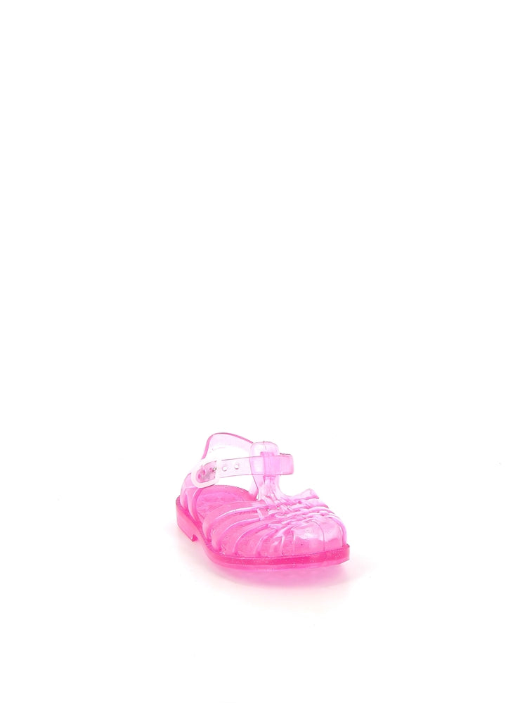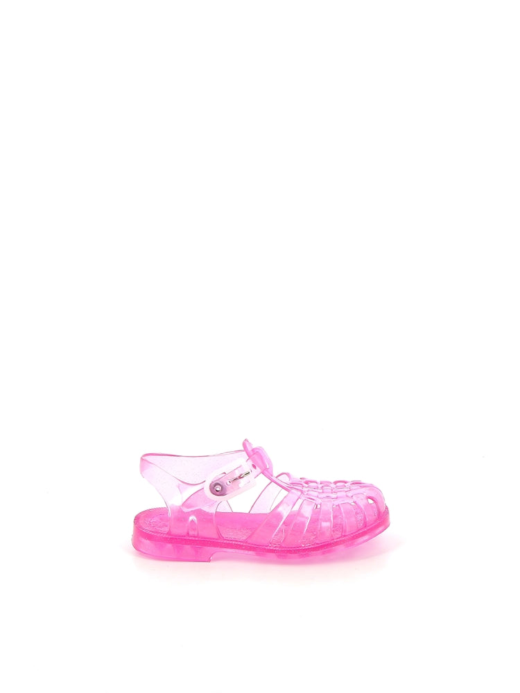 Available from size 18 to 38 in Pink Glitter, these kids Sun sandals are the perfect pair for the beach. These sandals have a rounded toe, braided straps and spiked sole.