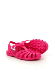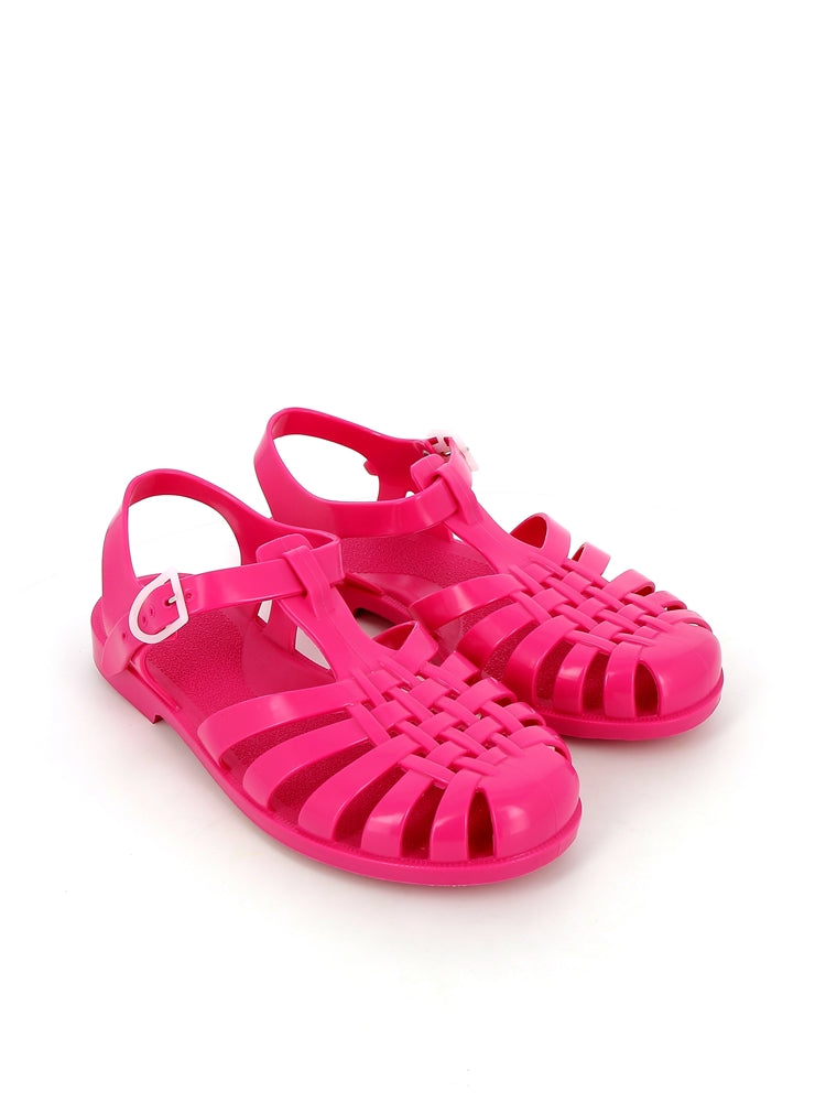 Available from size 35 to 42 in Fuchsia, these women's Sun sandals are the perfect pair for the beach. These sandals have a rounded toe, braided straps and spiked sole.