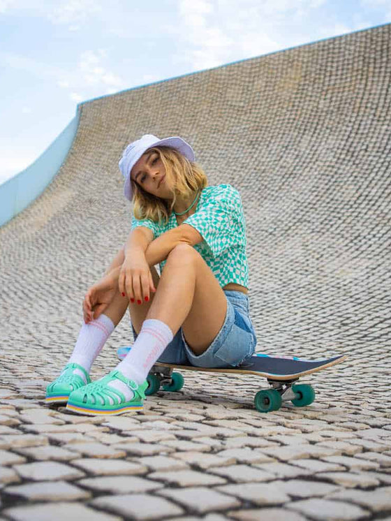 Available from size 36 to 41 in Azure color, these women's Sunset sandals are the perfect pair for sunny days. These sandals are in PVC and have a hand-assembled EVA sole.