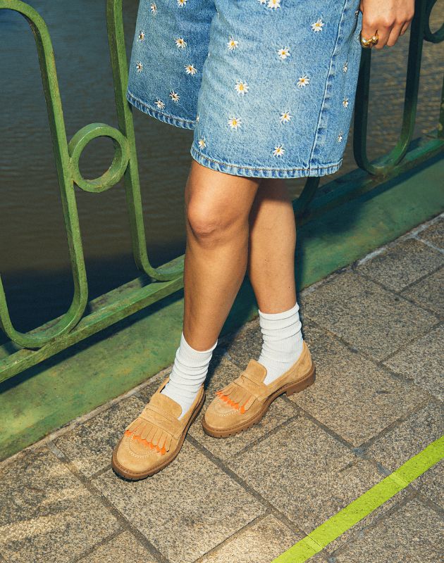 Fall in love with our new beige leather moccasin for women! Made from 100% leather inside and out, it offers unparalleled comfort and a casually chic style for every season. Its natural beige hue goes with everything from jeans to tailored suits.