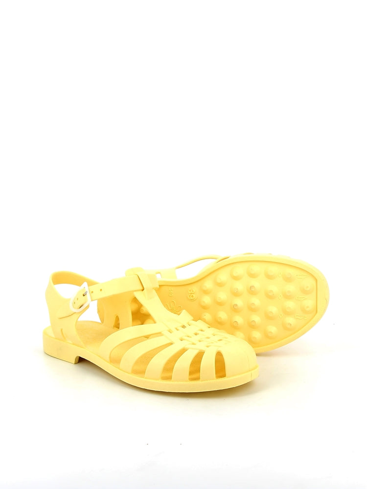 Discover these women's straw-colored plastic sandals with an elegant and minimalist style, perfect for your summer days. Their matte finish adds a sophisticated and modern touch, while their French craftsmanship guarantees quality and expertise. Lightweight, comfortable, and water-resistant, they are ideal for the beach, the pool, or summer strolls, combining practicality and style.