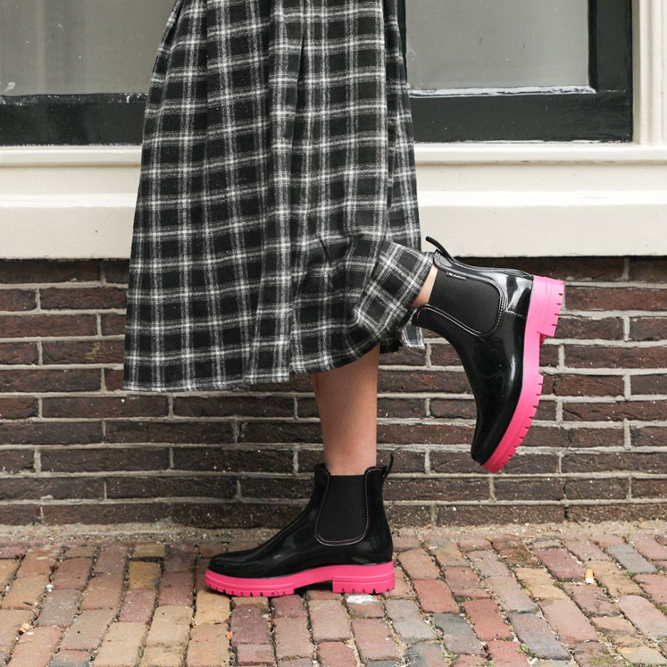 Available from size 36 to 41 in Black/Fuchsia, these women's Jalbal low boots are the perfect pair for rainy days.