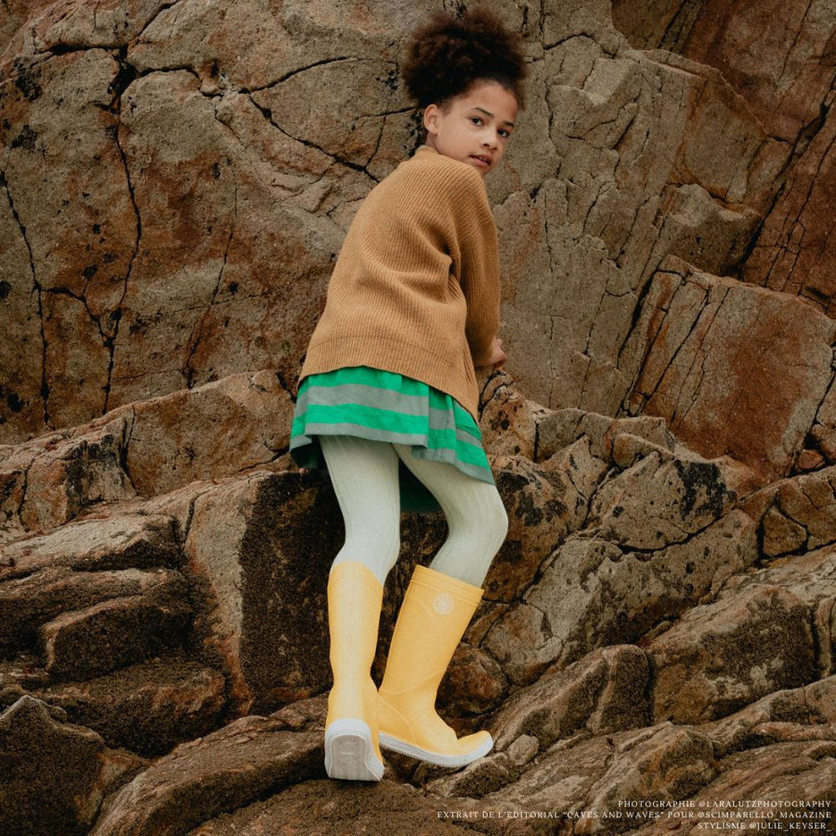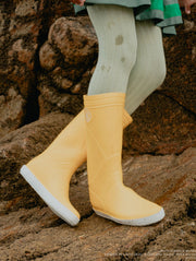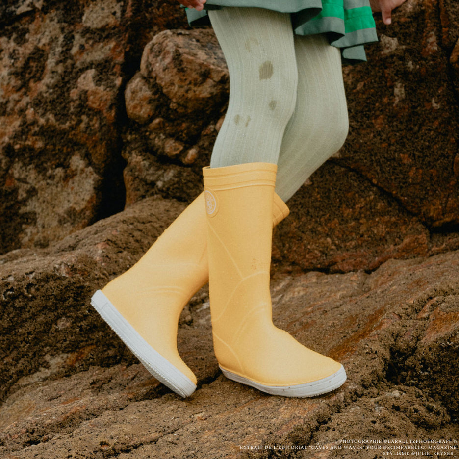 Illuminez les Jours Pluvieux avec des Bottes de Pluie pour Enfant Jaune, fabriquées avec Soins en France. Quand les nuages s'amoncellent et que la pluie commence à tomber, il est temps d'équiper nos petits aventuriers avec des bottes de pluie qui ajoutent une touche de soleil à leurs journées grises. Nos bottes de pluie pour enfant sont imperméables pour garantir la journée au sec. Elles sont équipées d'une semelle robuste qui offre une adhérence fiable, permettant aux enfants de jouer en toute sécurité sur les surfaces mouillées.