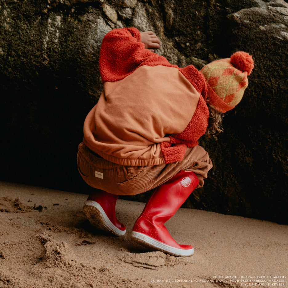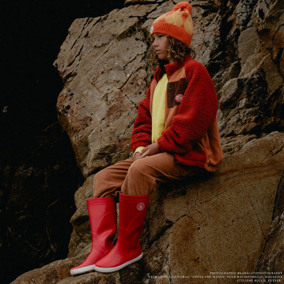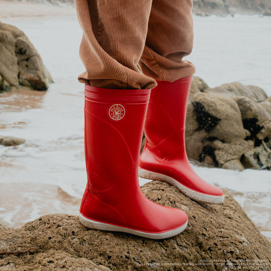 Lorsque la pluie bat son plein, nos bottes de pluie pour enfants, fabriquées avec dévouement en France et dotées d'un coloris rouge vif, offrent une combinaison parfaite de sécurité et de style. Avec une semelle antidérapante, ces bottes garantissent à vos petits aventuriers des pas sûrs même sur les surfaces les plus glissantes. Doubles pointures : 22/23 - 24/25 - 26/27 - 28/29 - 30/31 - 32/33 - 34/35 - 36/37 - 38/39