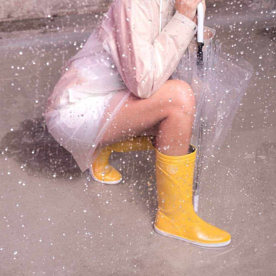Quand le ciel fait grise mine, place au style avec nos bottes de pluie Jaune pour femme !