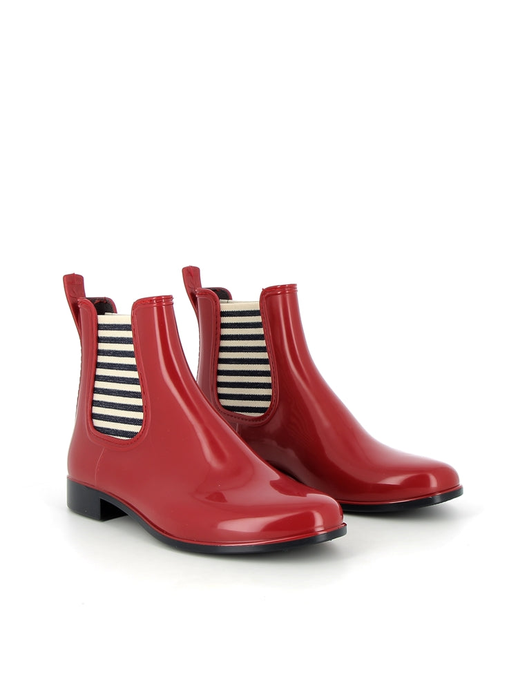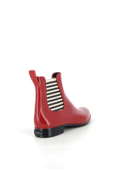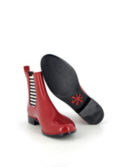 Portez ces chaussures avec fierté, exprimant la passion de la mode française et l'esprit marin. Que le rouge vibrant évoque la passion ou rappelle le drapeau maritime, ces bottines faciles à enfiler incarnent l'élégance intemporelle avec une touche contemporaine. Brillez sous la pluie avec cette création qui célèbre la mode française sous toutes ses facettes.