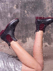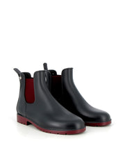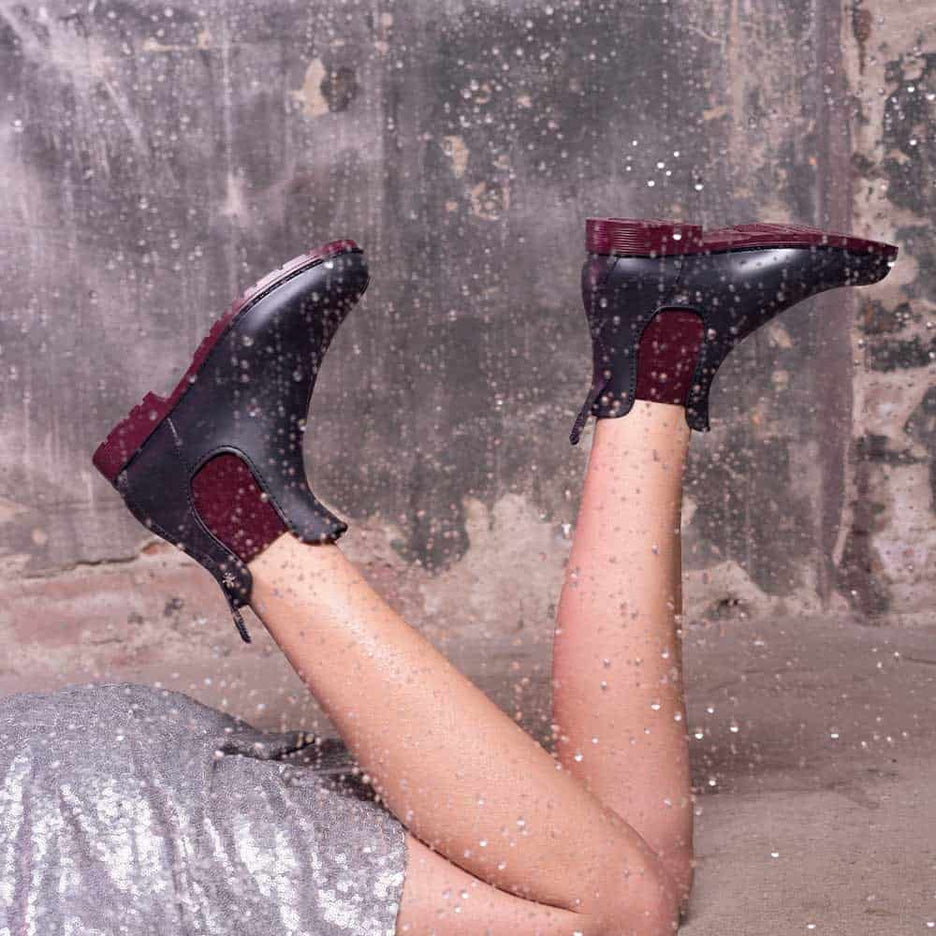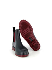 Méduse signe des bottines de pluie pour femme anthracite à semelle bordeaux qui allient audace, confort et savoir-faire français. Fabriquées en France, elles offrent une protection fiable, un style affirmé et une qualité durable, même sous la pluie.