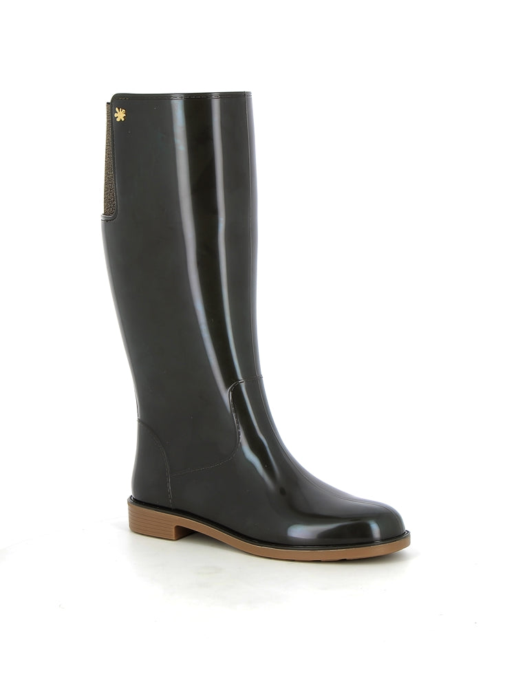 Craquez pour les nouvelles bottes hautes Méduse pour femmes. Elles sont tout à fait divines! Leur finition brillante, la semelle crêpe, l'iconique splash argenté apposé ainsi que l'élastique brillant, tous ces éléments en font un modèle à avoir dans votre garde robe pour cet hiver. Ces bottes pour femmes kaki feront tourner tous les regards.