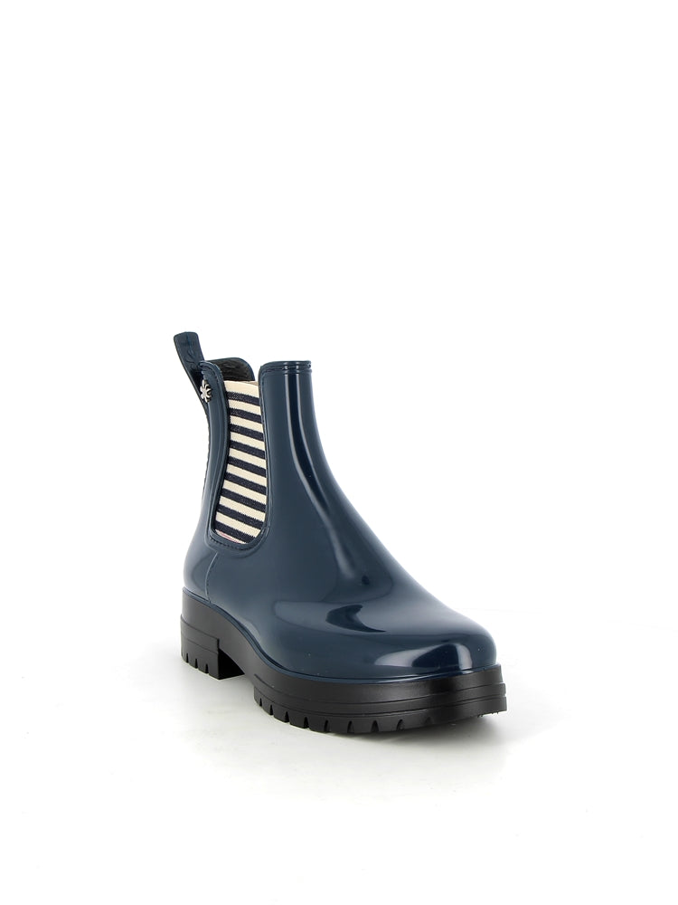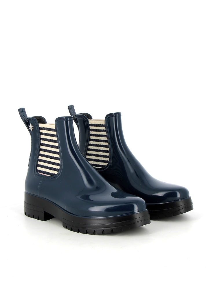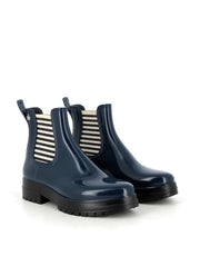 Craquez pour les bottines de pluie femme Méduse, fabriquées en France. Elles arborent un élastique à rayures pour un look marin à tomber. Sa semelle noir et son coloris bleu pétrole viendront apporter une touche chic à vos looks. Fabriquées en PVC, elles sont waterproof et pourront vous accompagner même les jours de pluie.