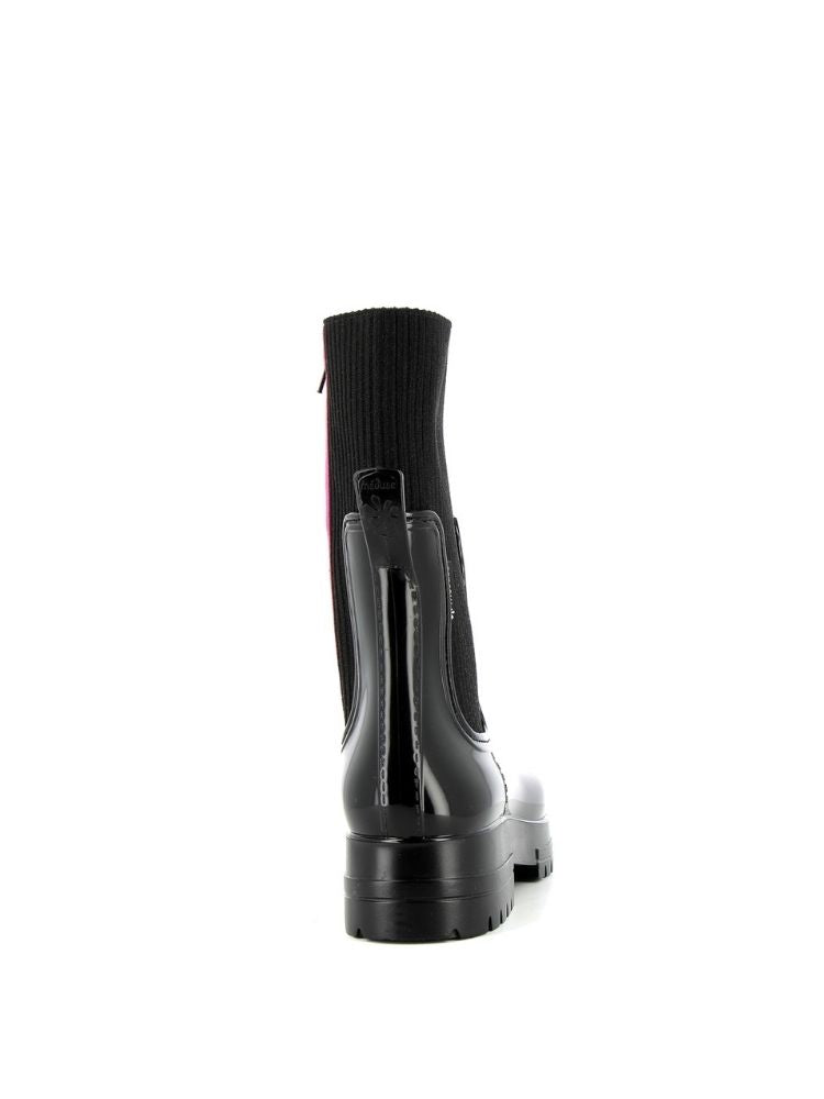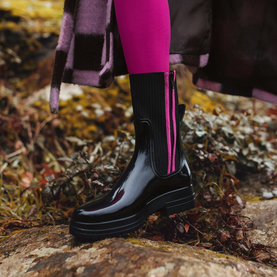 Le contraste entre la sobriété du noir et la vivacité du fuchsia donne à ces bottines Chelsea Noires une personnalité unique. Ces bottines chaussettes noires et fuchsia transcendent les saisons, apportant une touche de gaieté à toutes vos tenues. Assorties à une robe élégante pour une soirée spéciale ou associées à un jean décontracté pour une sortie en ville, ces bottines ne manqueront pas de faire tourner les têtes et de susciter l'admiration.