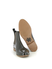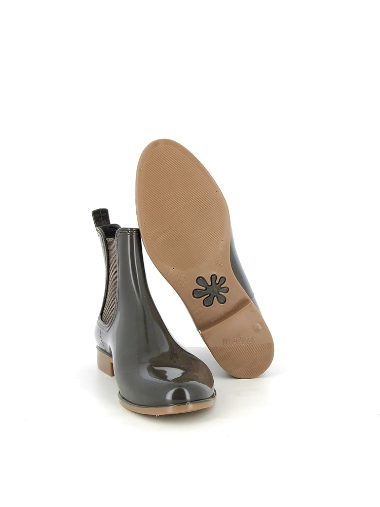 Découvrez nos nouvelles bottines de pluie pour femme Méduse. Semelle plate, finition brillante et élastique doré pailleté, ne serait-ce pas là la recette d'une paire à tomber ? Faciles à enfiler et très confortables, elles sont fabriquées en France avec amour.