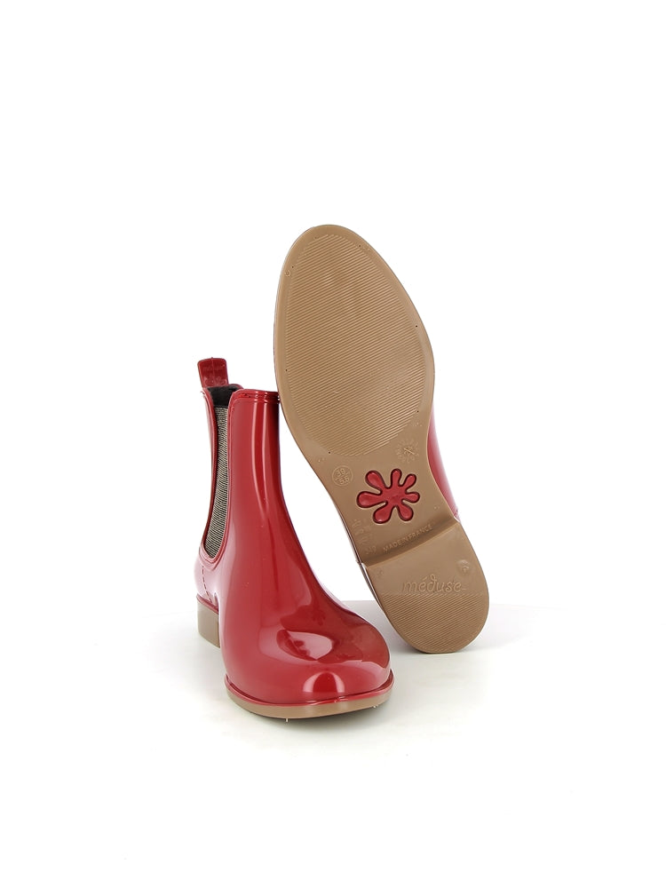 Découvrez nos nouvelles bottines de pluie pour femme Méduse. Semelle plate, finition brillante et élastique doré pailleté, ne serait-ce pas là la recette d'une paire à tomber ? Faciles à enfiler et très confortables, elles sont fabriquées en France avec amour.