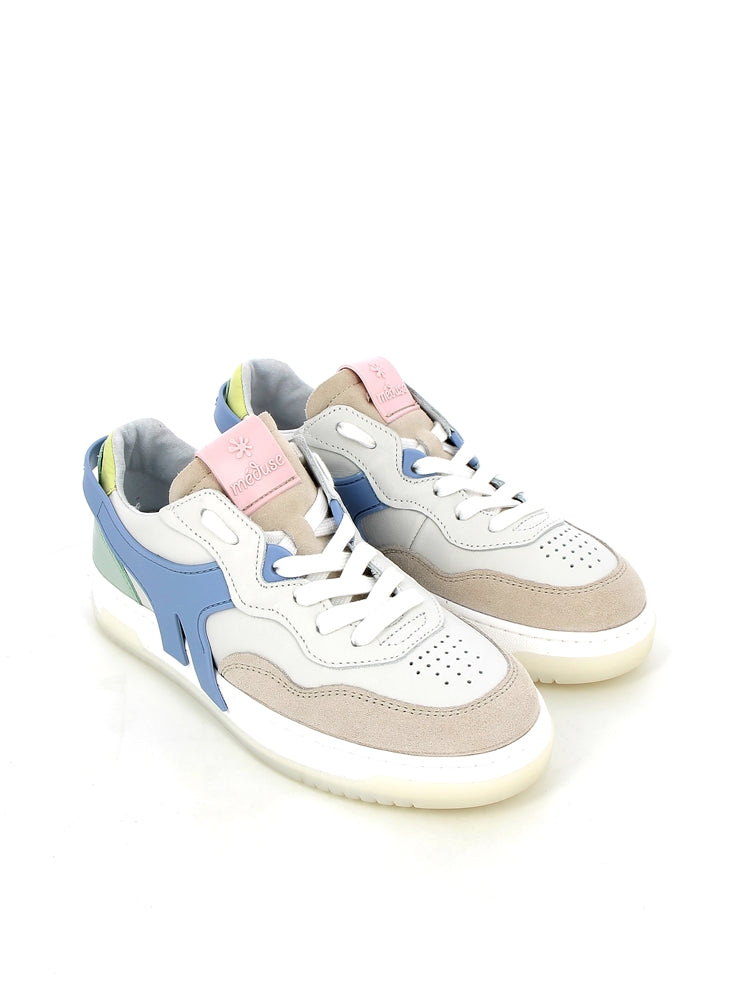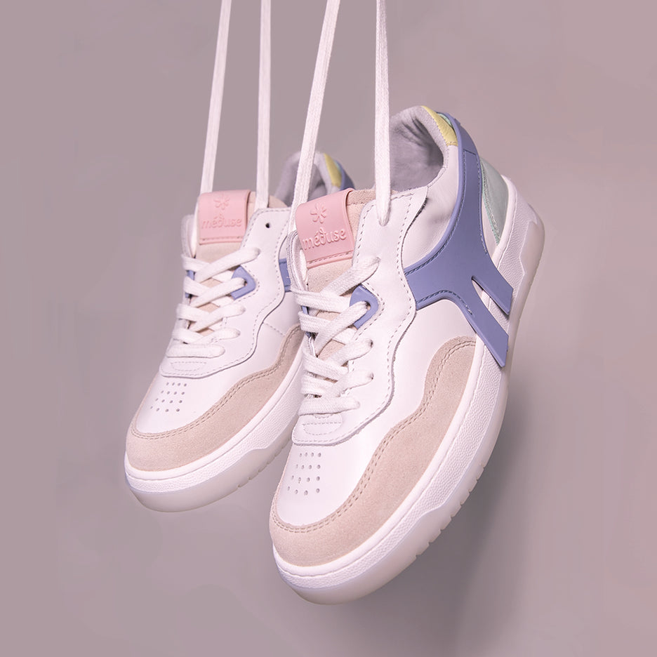 Fabriquées en France avec une attention méticuleuse aux détails, ces baskets aux teintes de bleu pastel, rose pastel et blanc définissent une nouvelle norme de style et de sophistication. Ces sneakers explorent l'harmonie subtile entre le cuir de qualité certifié LWG (respectueux de l’environnement), la palette pastel apaisante et le savoir-faire français.