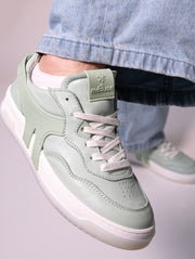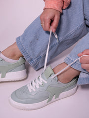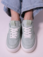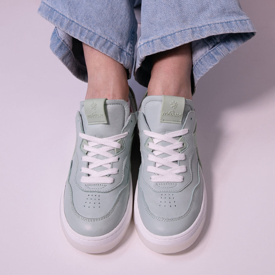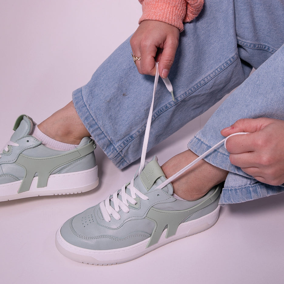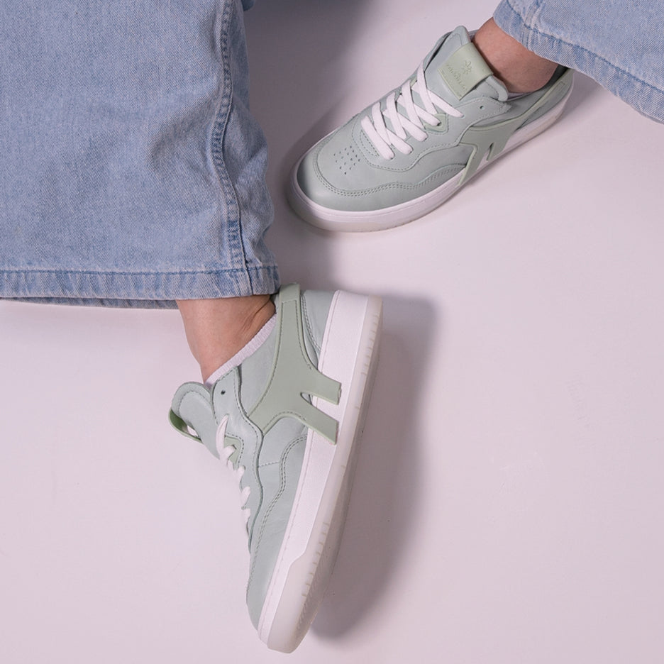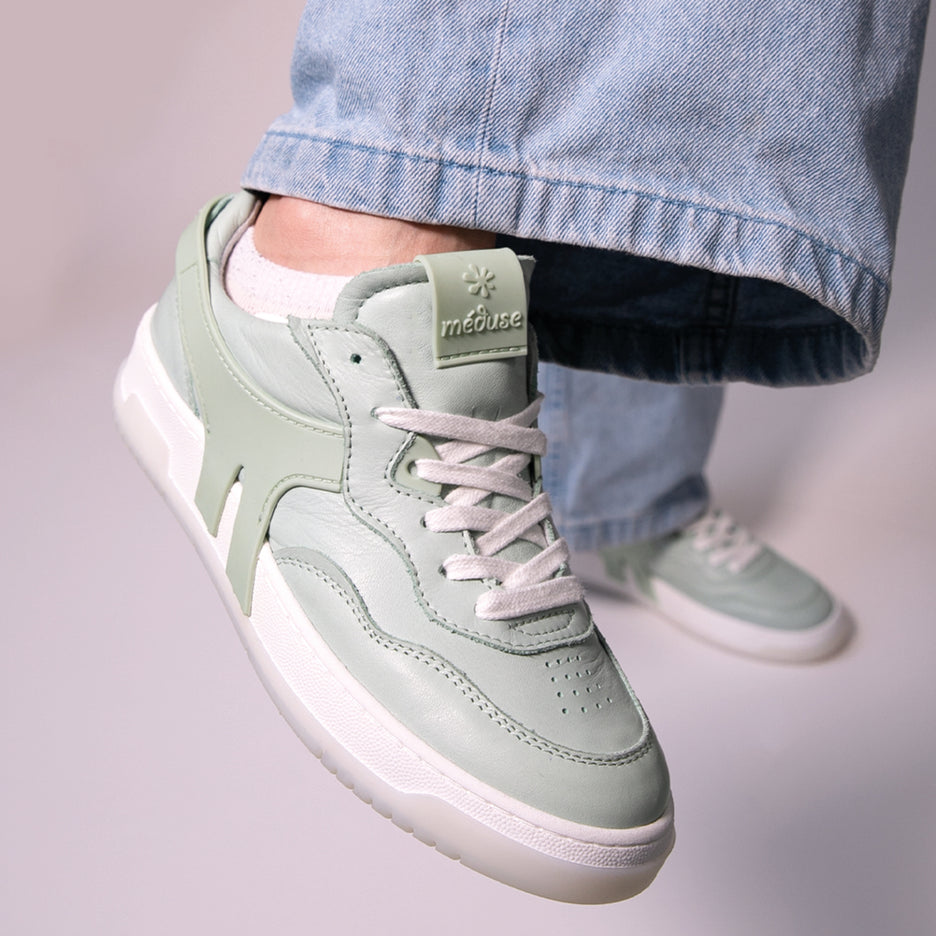 Découvrez nos baskets en cuir 100% fabriquées en France, avec un accent particulier sur le coloris céladon, une teinte verte douce et raffinée.