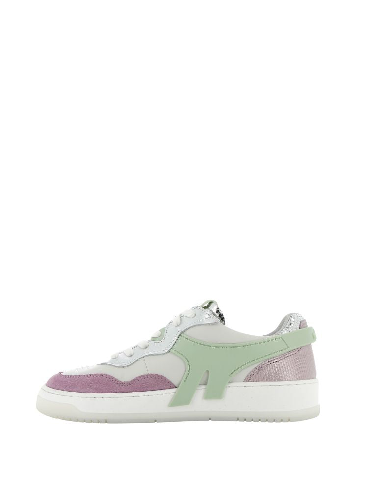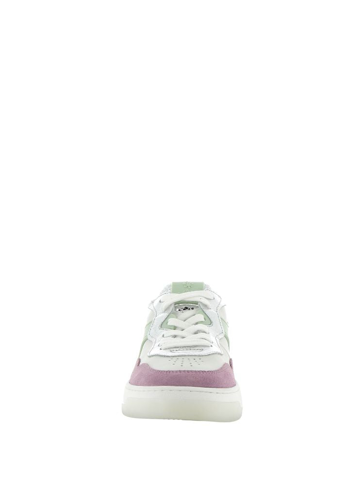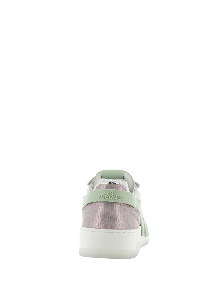 Nos baskets féminines à la mode puisent leur inspiration dans la fameuse sandale Sun Méduse, reconnue pour son design épuré et son confort incomparable. Retrouvez l'application latérale en PVC emblématique de la sandale, réinterprétée avec élégance sur nos baskets dans un subtil mélange de lilas blanc et argent avec une touche de vert.