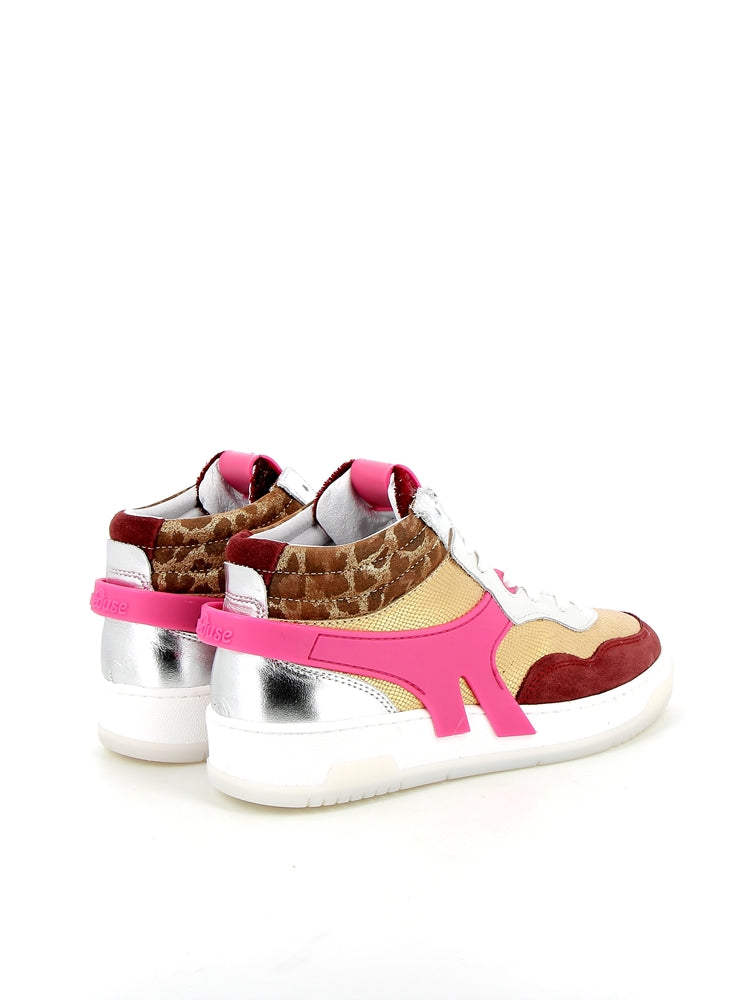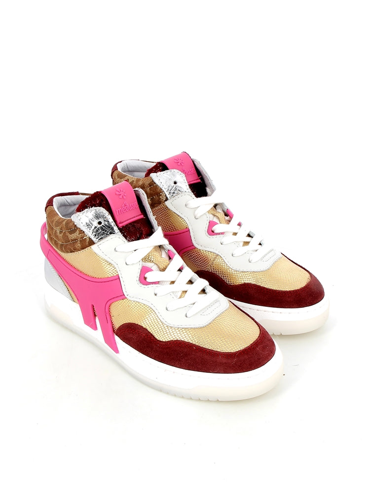 Nos baskets pour femmes, à la pointe de la mode, s'inspirent de la célèbre sandale Sun Méduse, reconnue pour son design épuré et son confort inégalé. Vous retrouverez avec élégance l'applique latérale en PVC caractéristique de la sandale, réinventée avec succès sur nos baskets dans un superbe mélange de couleurs bordeaux et or, apportant une touche de fraîcheur.