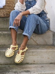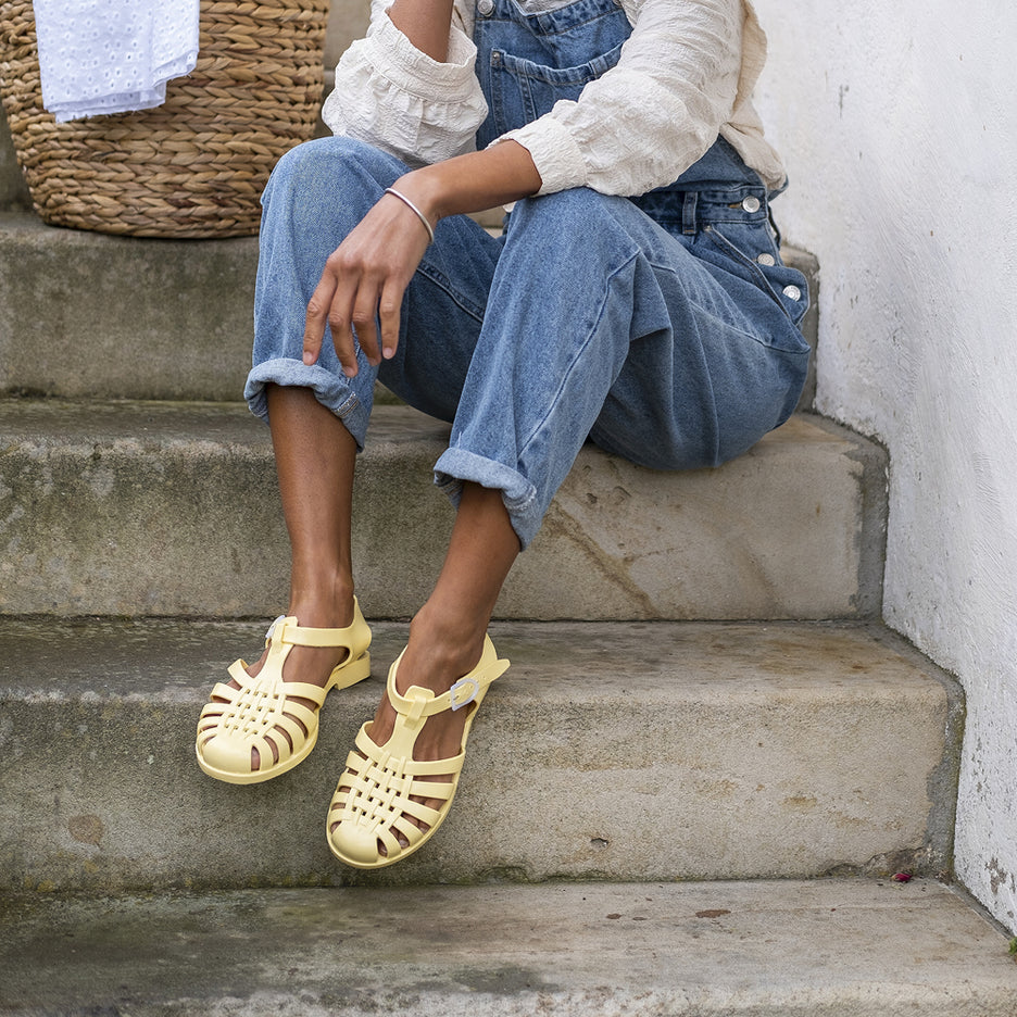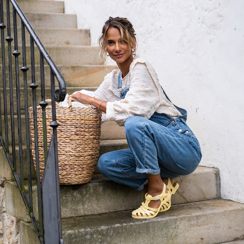 Les sandales paille, nature mais pas plan-plan ! Avec leur teinte ensoleillée et leur tressage rétro, ces sandales en PVC sont un vrai rayon de soleil pour vos pieds ! Légères, confortables et dotées d’une semelle crantée prête à tout, elles vous suivent du marché au bord de mer avec un style bohème assumé.