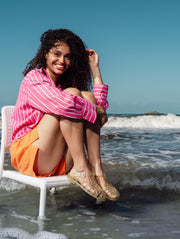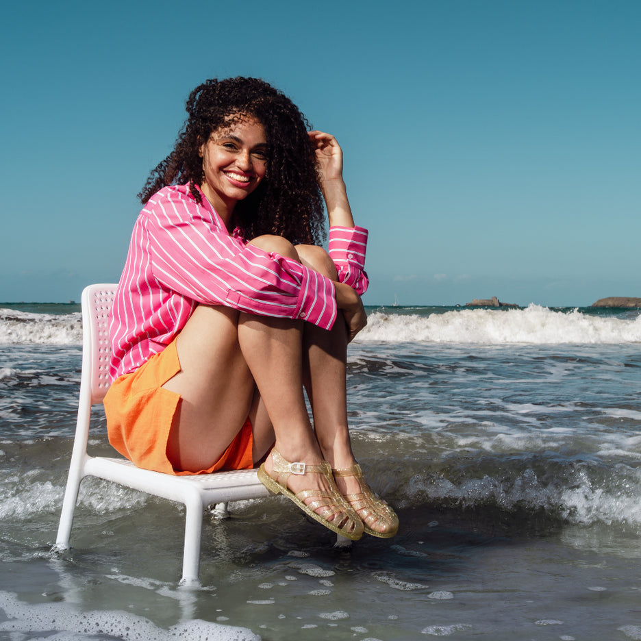 Les sandales tressées doré pailleté pour femme sont là pour illuminer vos journées estivales ! Avec leur éclat scintillant, elles ajoutent une touche de glamour à toutes vos tenues. Légères, confortables et prêtes à vous suivre dans toutes vos aventures, elles sont idéales pour les soirées en terrasse, les promenades en bord de mer ou les événements entre amis. Leur semelle crantée assure une adhérence parfaite pour marcher avec style et confort, tout en capturant chaque rayon de soleil.