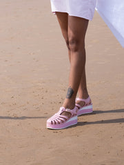 Découvrez la sandale Méduse dans un ravissant coloris rose pastel, évoquant la douceur et la féminité. Son talon compensé assorti, d'un rose délicat, apporte une touche de sophistication supplémentaire. Associé à une semelle EVA blanche, montée à la main avec le plus grand soin, ce modèle incarne l'harmonie parfaite entre élégance et confort.