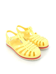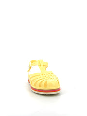 Préparez-vous à illuminer les rues de la ville avec la sandale Méduse dans son éclatante teinte jaune. Fabriquée avec du PVC français de qualité garantie sans phtalates et vegan, cette sandale pour femme incarne le mariage parfait entre style et durabilité. Montée à la main avec une semelle EVA blanche agrémentée de lignes colorées, elle offre un confort exceptionnel et une esthétique urbaine incomparable.