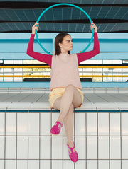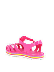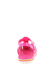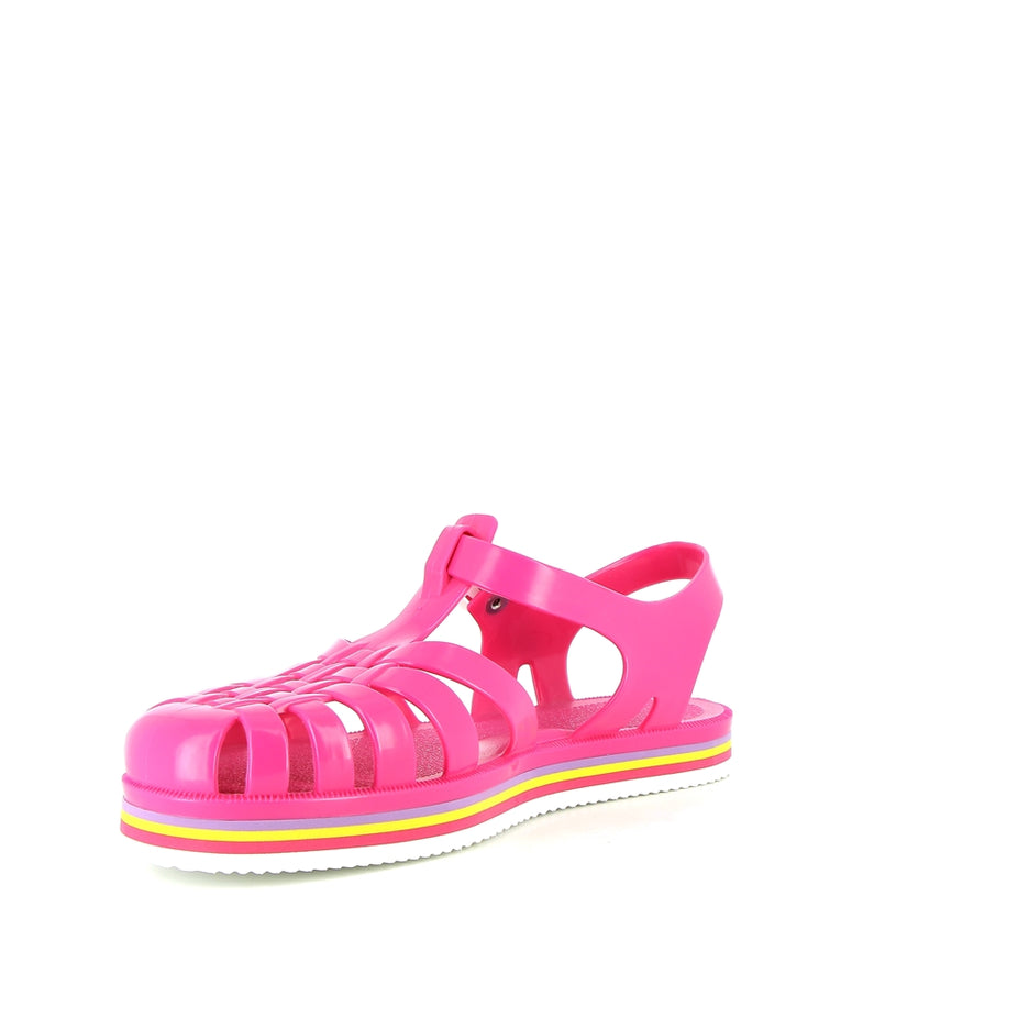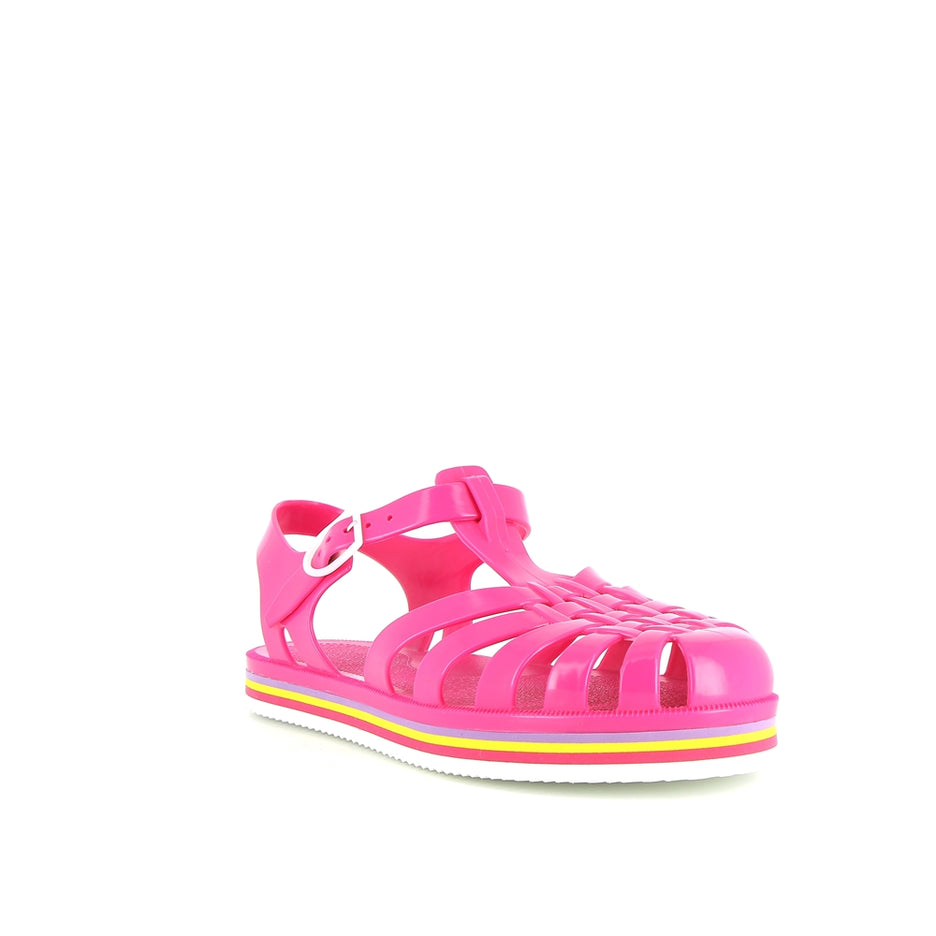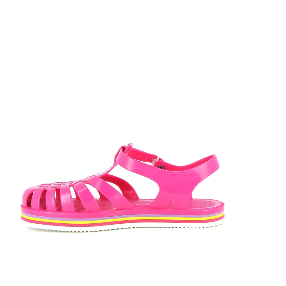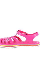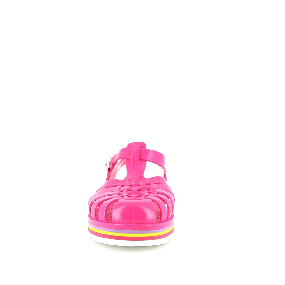 La sandale Méduse est de retour avec une nouvelle silhouette audacieuse et une teinte vibrante de fuchsia, idéale pour égayer vos escapades urbaines. Fabriquée en PVC français garanti sans phtalates et vegan, cette sandale incarne le mariage parfait entre style et qualité. Montée à la main avec une semelle EVA blanche ornée de lignes colorées, elle offre un confort exceptionnel et une esthétique urbaine chic.
