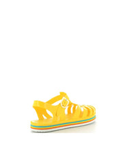 Préparez-vous à illuminer les rues de la ville avec la sandale Méduse dans son éclatante teinte jaune. Fabriquée avec du PVC français de qualité garantie sans phtalates et vegan, cette sandale incarne le mariage parfait entre style et durabilité. Montée à la main avec une semelle EVA blanche agrémentée de lignes colorées, elle offre un confort exceptionnel et une esthétique urbaine incomparable.