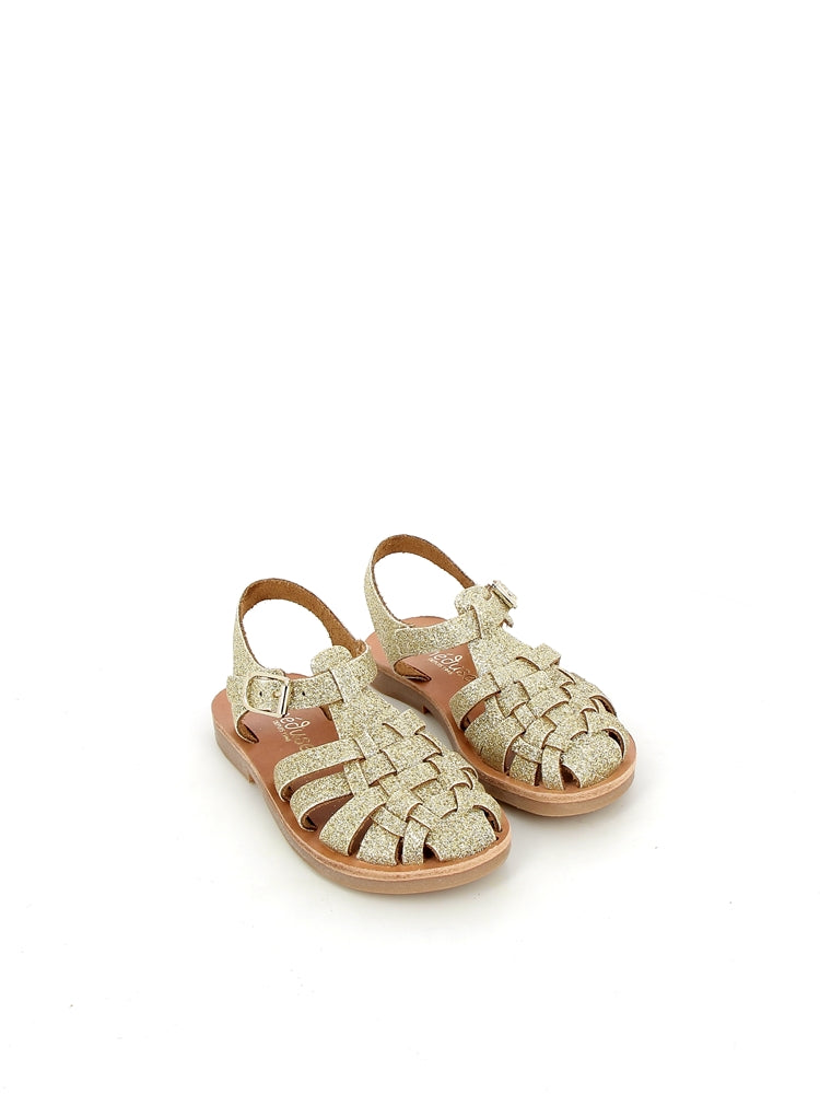 Notre iconique sandale pour enfant revient dans une version cuir, pour votre plus grand bonheur. Cette sandale cuir pour enfant coloris doré pailleté ultra tendance viendra apporter une touche de pep's aux tenues de vos petites filles. Sa bride ajustable permettra un vrai maintient de la cheville pour assurer le confort de vos enfants. Si vous voulez un look match-matchy mère/fille associez là avec notre sublime sandale cuir doré pailleté pour femme. Cette paire est livrée dans un pochon en tissu.